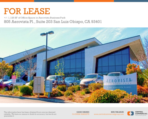 For Sale: 805 Aerovista Place, San Luis Obispo, CA 93401 – Suite 205Modern, flexible office space conveniently located at 805 Aerovista Avenue, Suite 204, in San Luis Obispo, California.